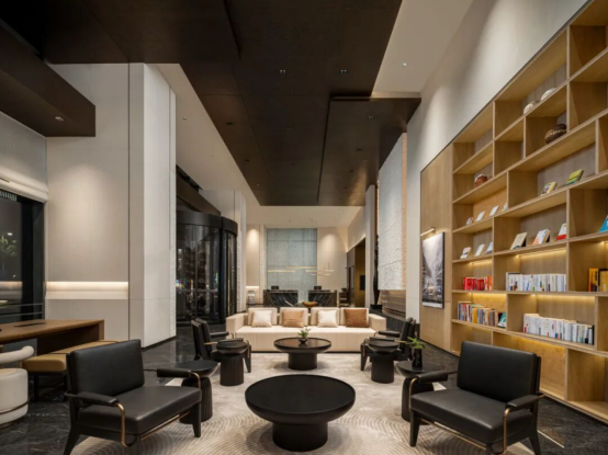 “我们希望空间不仅仅是住宿容器,更是文化体验的载体。”项目负责人介绍道。酒店的公共区域设有竹居空间,陈设西安在地文化相关书籍,旅客可以在咖啡区阅读、社交,也能在细微处感受西安的城市性格。