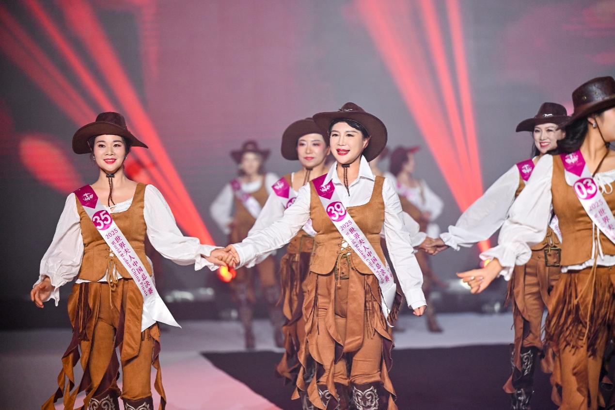 晚会第一篇章以“西部风尚”为主题,全体参赛选手身着时尚牛仔服饰,以活力四射的舞台表现,展现了当代女性自信洒脱的时尚风貌,将经典西部元素与现代审美完美融合,呈现出热情奔放的舞台效果。