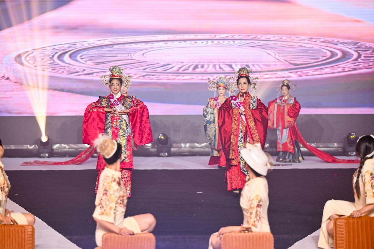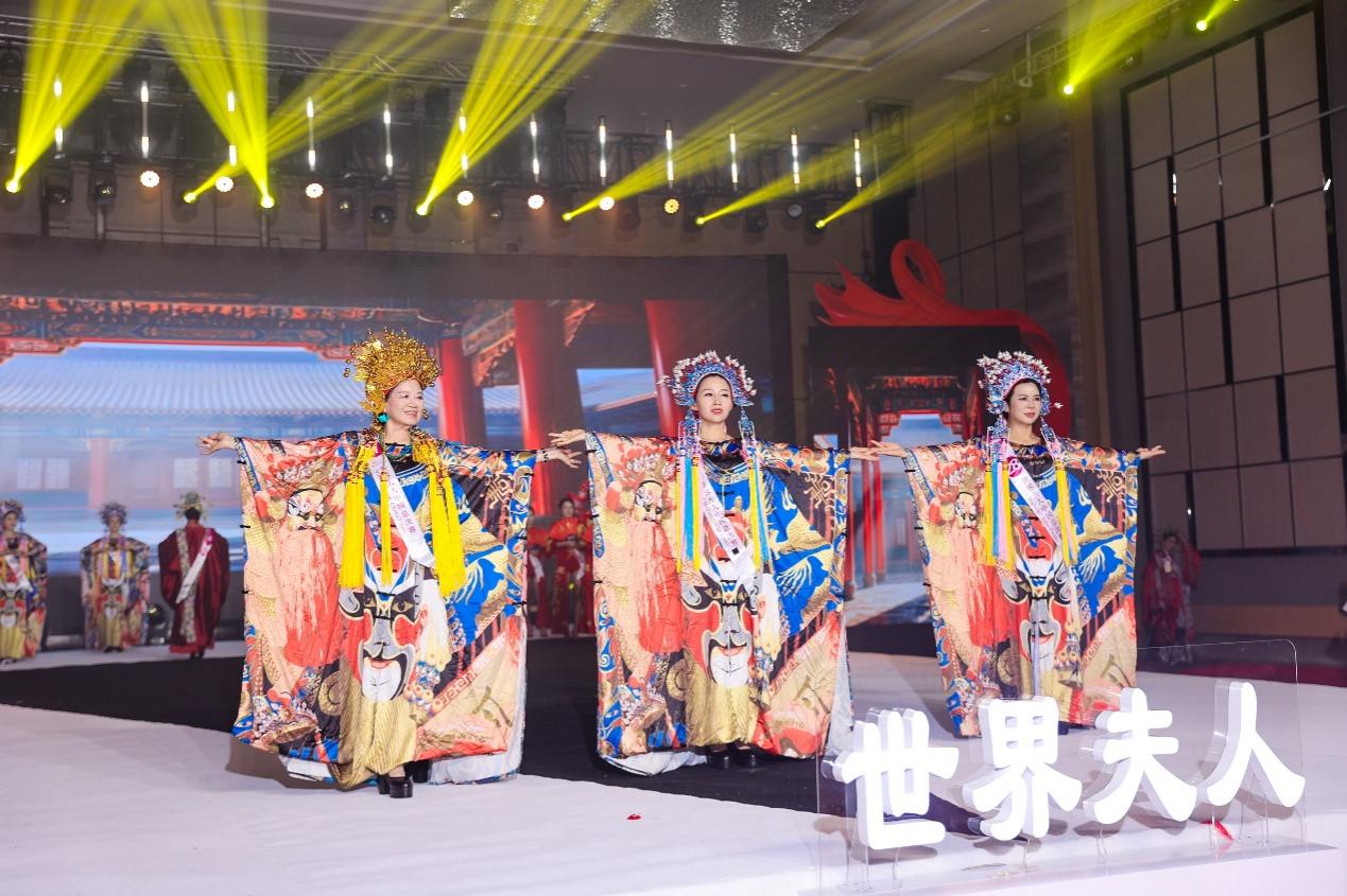 第二篇章“东方情韵”中,六名舞蹈演员身着精致旗袍,手持民国复古行李箱,以细腻深情的舞蹈语言,演绎了全球华侨深切的思乡之情。随后,20多位世界夫人选手化身为大唐盛世的使者,将传统京剧精髓与现代改良东方美学巧妙融合,展现出跨越时空的东方韵味与典雅气质。