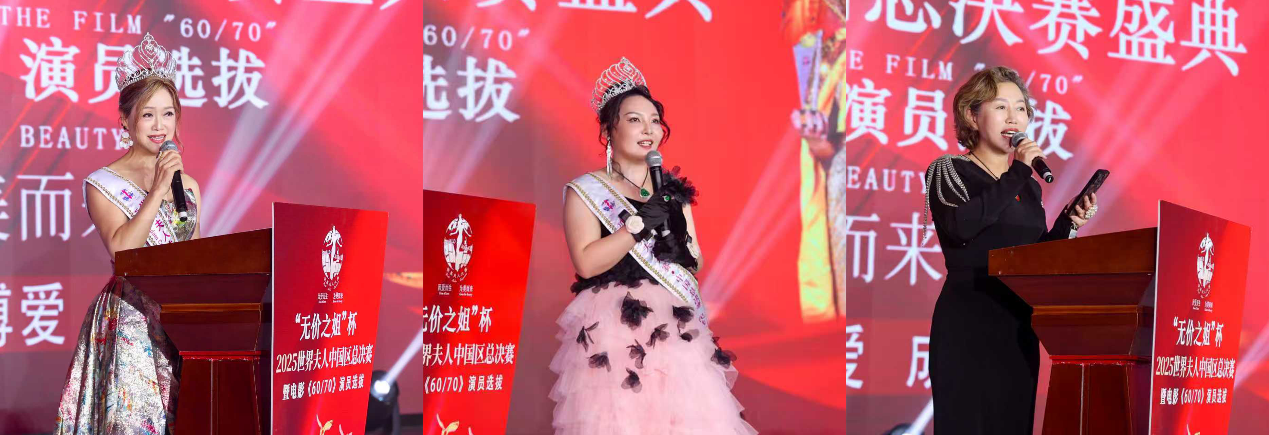 世界夫人主席团陈玲、王芊雅、杜玉霜女士分享大赛“蜕变、成长”理念并致辞,勉励选手传承爱心,绽放优雅风采,传递时代女性力量。