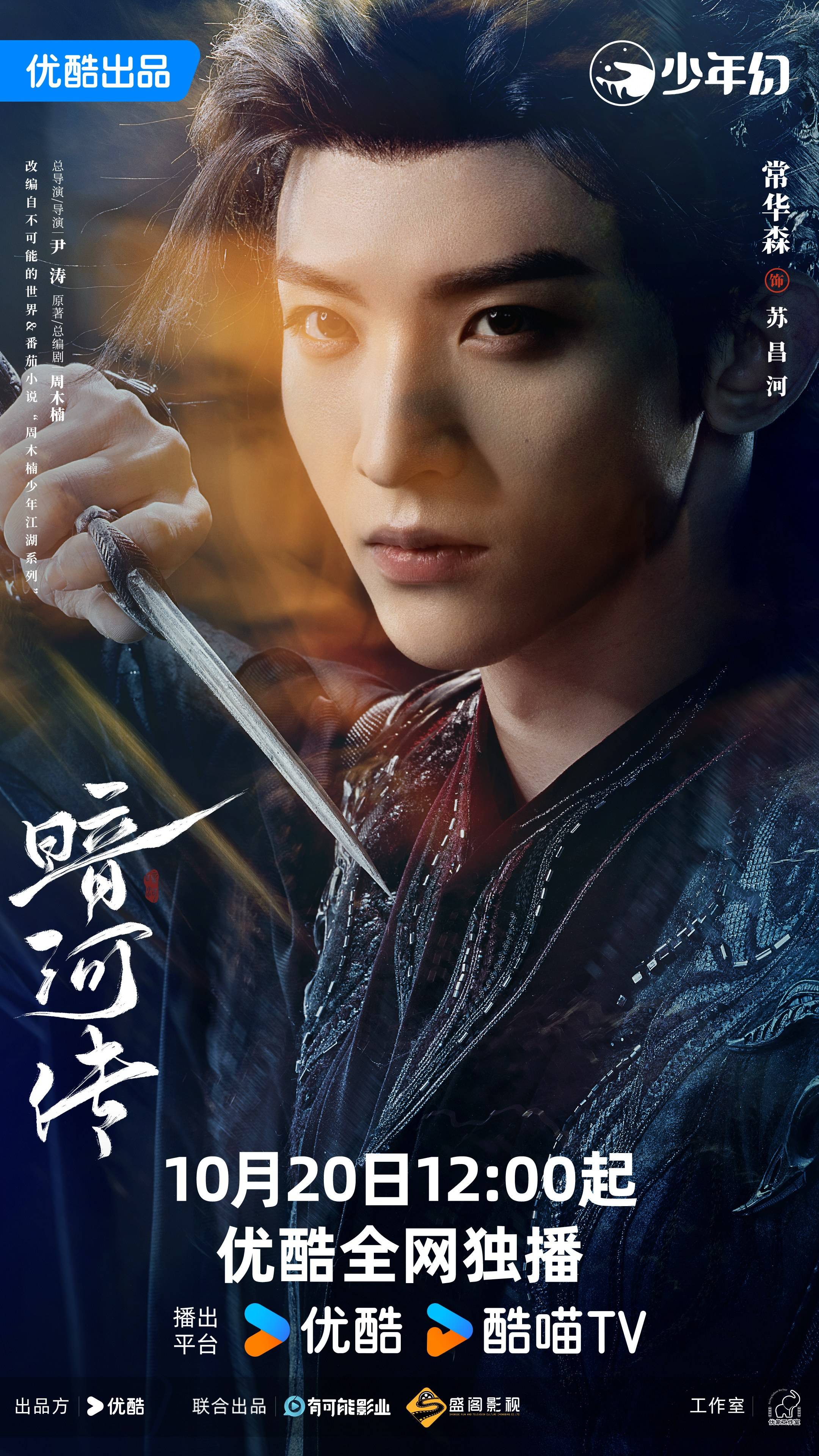 江湖暗涌,血色争锋。由周木楠同名小说改编,优酷、有可能影业、盛阁影视出品的电视剧《暗河传》今日燃爽开播。该剧总导演/导演尹涛,原著/总编剧周木楠,编剧蔺丛鹤,总制片人粥帅博、穆静文,制片人刘跇辰、林姝邑,领衔主演龚俊、领衔主演彭小苒,特别主演乔振宇,领衔主演常华森、杨雨潼、孔雪儿、章时安,还有耿乐、张维娜、严屹宽等一众知名演员热血加盟,共同演绎全新视角的武侠故事。
