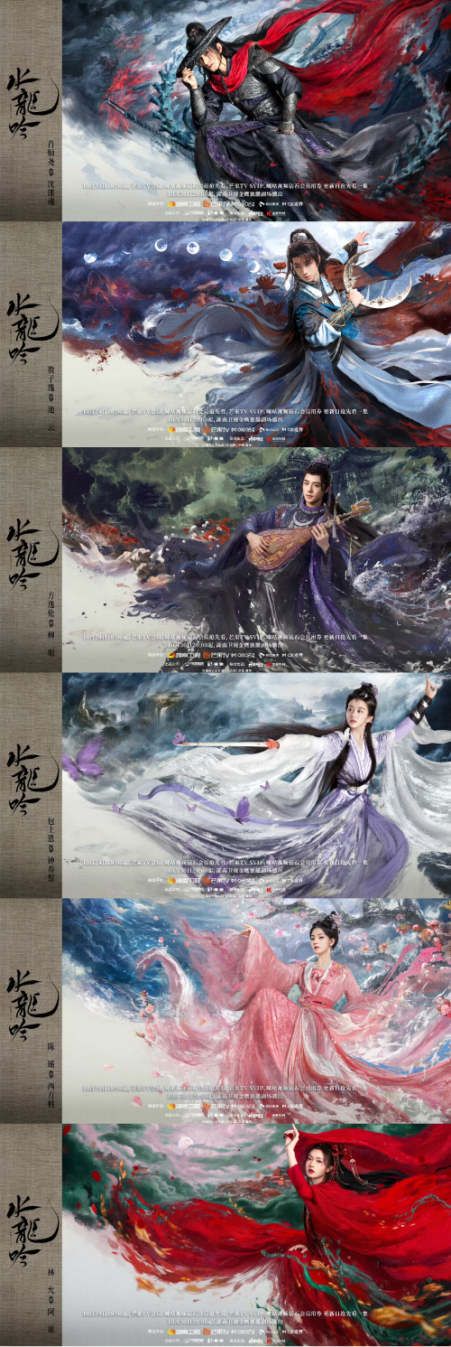 今日,玄侠剧《水龙吟》正式发布全阵容主角单人海报,以极具视觉冲击力的东方美学风格,首次揭晓剧中十二位核心人物的角色造型。此番角色阵容堪称群星辉映,各展风华:罗云熙饰演的唐俪辞雍雅贵气,温润俊朗,于神秘超然中透出侠者气度;肖顺尧饰演的沈郎魂刀锋凛冽,摄人心魄;敖子逸则将池云的潇洒倜傥诠释得恰如其分,尽显少年意气;方逸伦饰演的柳眼身着一袭紫袍,手抚琵琶独坐月下楼阁。其他角色亦惊艳亮相、风采各异:钟春髻(包上恩 饰)剑舞蝶影,西方桃(陈瑶 饰)笑靥藏锋,阿谁(林允 饰)红衣逐月,鬼牡丹(徐正溪 饰)极致风流,方平斋(王以纶 饰)紫影摇光,普珠(杨仕泽 饰)仙姿飒然,余负人(谢彬彬 饰)剑映枫火,红姑娘(姜贞羽 饰)朱衣灼华,共绘江湖绝色。