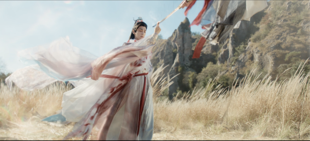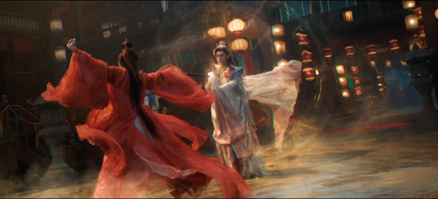 定档预告中,武戏场景如一幅幅流动的东方写意长卷:唐俪辞或一袭玄衣踏月凌空,身姿如墨;或以红绸为刃,于高台楼阁间舞出一抹惊鸿;更有与柳眼在桃花纷飞间、蒹葭摇曳处的往来过招,剑影与落花共舞,最终唯留长剑静卧、与落英同寂。每一帧画面皆将侠者之“势”与东方之“韵”熔铸一体,既见招式的凌厉写实,亦含意境的空灵留白,共同缔造出一场兼具视觉震撼与美学沉淀的东方盛宴。