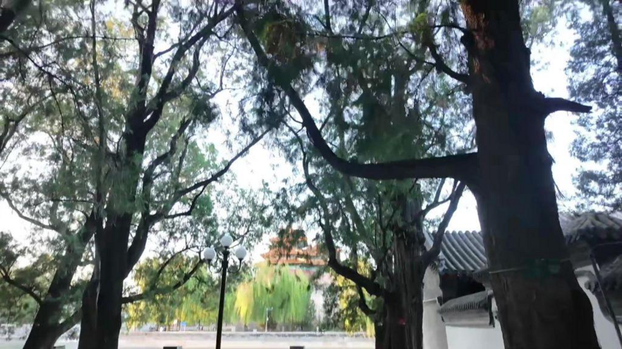 近景古柏重墨见筋骨,中景河面淡墨显灵动,远景西华门虚墨藏韵味。银笺的亮,让虚的更虚,实的更实,这就像中山公园的历史,社稷坛的过往是‘实’,西华门的光影是‘虚’,笔墨要做的,就是让两者共生。