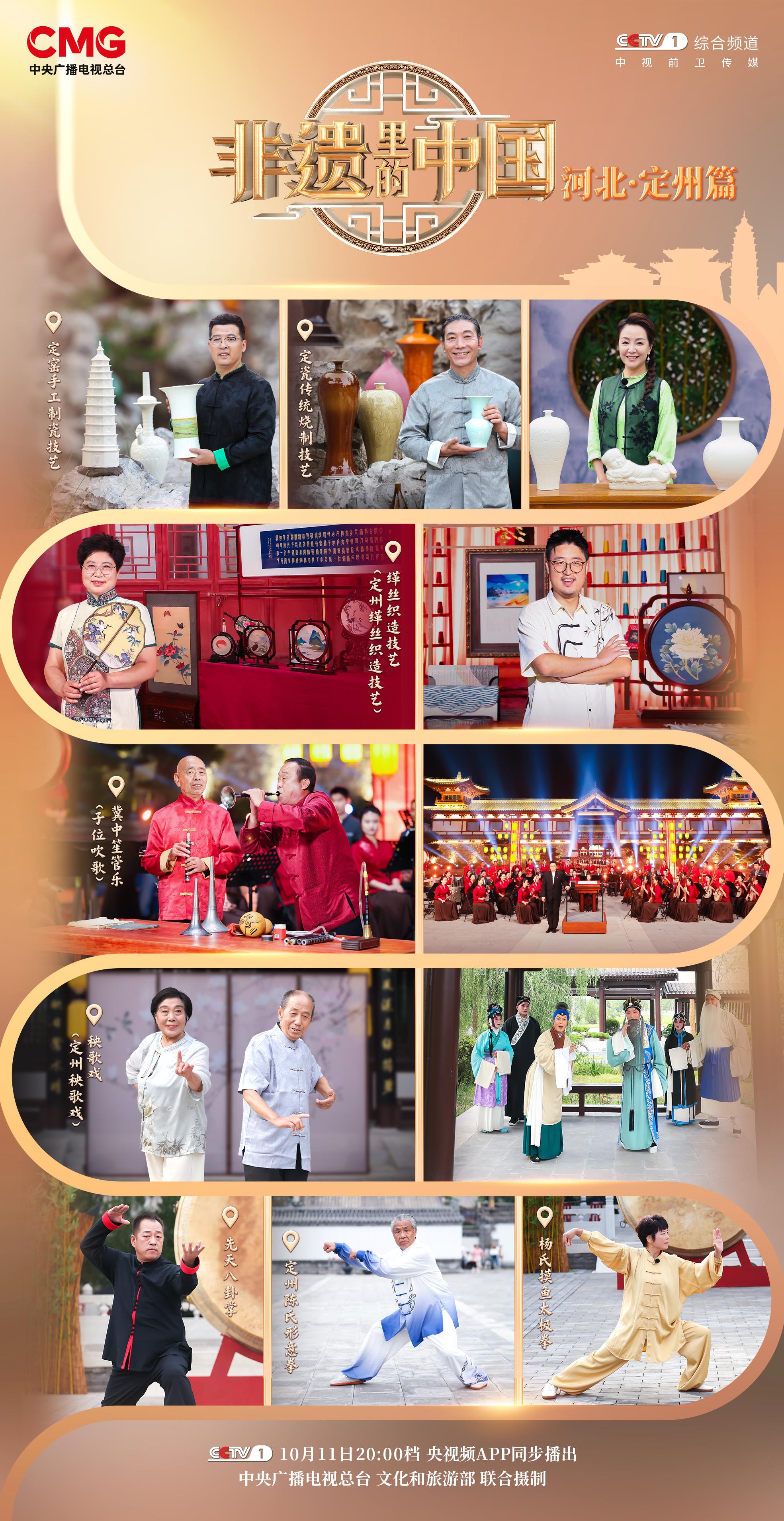 由中央广播电视总台与文化和旅游部联合摄制的大型文化节目《非遗里的中国》河北·定州篇将于10月11日20:00档在总台综合频道(CCTV-1)播出,央视频全网独家首播。