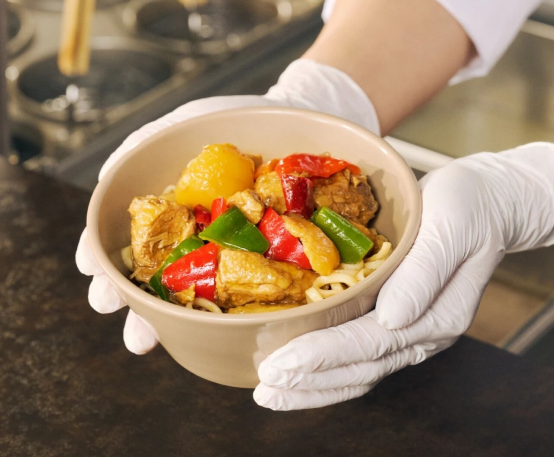在苏州,相城活力岛地铁站亚朵 X 酒店推出红汤面,强调“慢熬”的汤底逻辑;在北京天通苑立水桥北路亚朵酒店,炸酱面被完整保留了“拌”的仪式感;在库尔勒人民广场建设桥亚朵酒店,大盘鸡拌面成为清晨最醒目的热源;而在长沙雨花区喜盈门范城亚朵酒店,米粉档口始终围绕着对火候与辣度的精准控制。