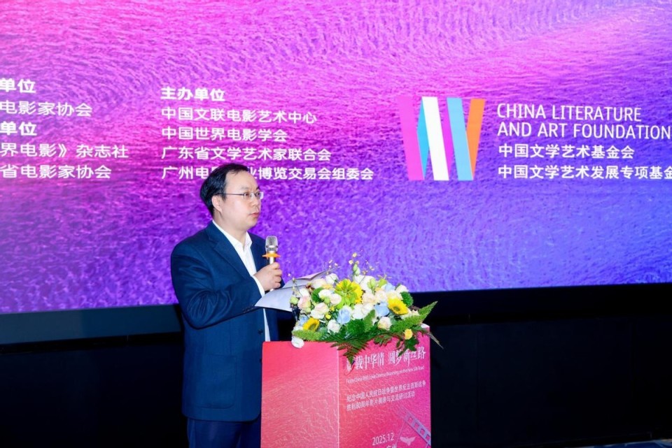 2025年12月19日,“影载中华情 圆梦新丝路——纪念中国人民抗日战争暨世界反法西斯战争胜利80周年影片展映与交流研讨活动”在广州市越秀区流花中心1号馆中国超高清数字纪实影像馆隆重开幕。本次活动由中国电影家协会指导,中国文联电影艺术中心、中国世界电影学会、广东省文学艺术界联合会、广州电影产业博览交易会组委会联合主办,《世界电影》杂志社、广东省电影家协会承办。该项目是中国文学艺术基金会、中国文学艺术发展专项基金资助项目。