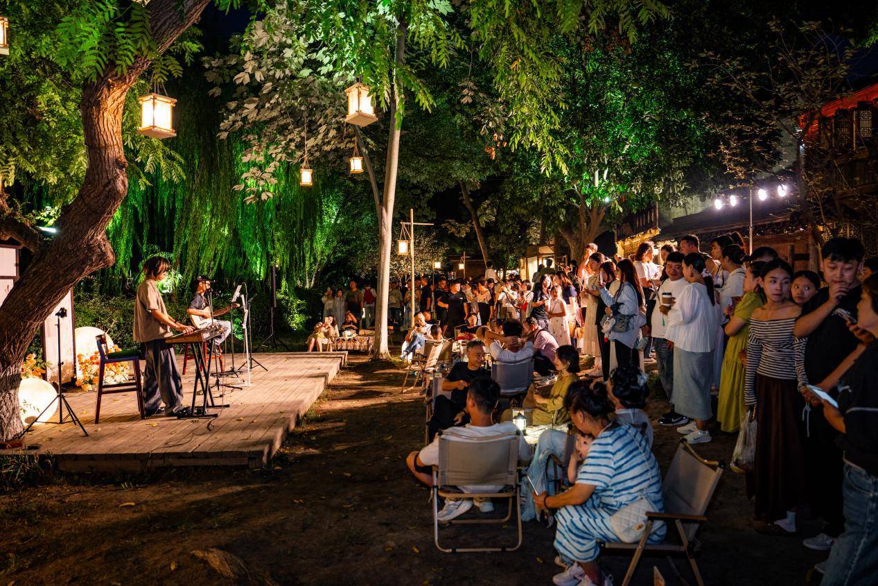 夜晚,灵水居草坪变身“庆功干杯夜”狂欢现场,现场设有乐队演绎、朗读会、开放麦等多元环节,更面向全国招募分享者,邀请大家围绕“你的年度故事”,温暖畅聊。在温暖乐队的演绎陪伴下,全场游客共同举杯,在真挚的祝福与碰杯声中,完成一次深度情感共鸣的年度仪式,共同迎接新年的到来。