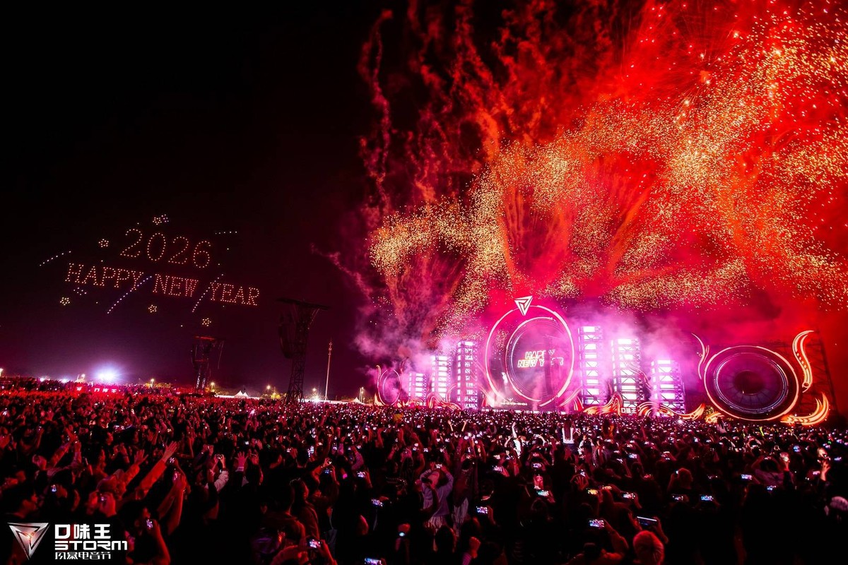 跨年夜倒计时环节堪称整场活动的灵魂亮点,完美复刻了国际顶尖电音节的仪式感。2025年12月31日23:59,Armin带领数万乐迷共同倒计时,无人机组成“2026 HAPPY NEW YEAR”光影矩阵,绚烂绽放的漫天烟火与舞台激光、激昂电音交织成梦幻图景,瞬间将现场氛围推向顶峰 。