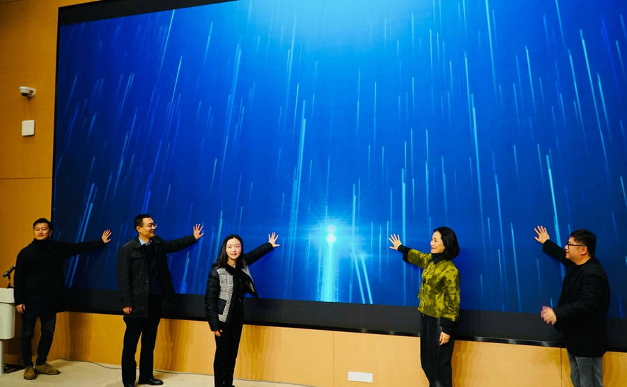 领导嘉宾共同为大型原创沪语音乐剧《启航》剧组成立点亮大屏幕