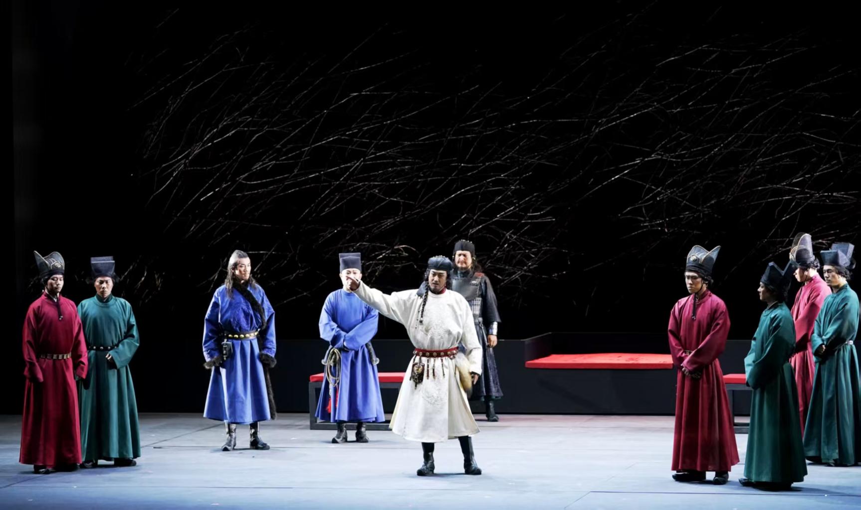 在约150分钟的演出时长内,《金中都》不仅以流畅的起承转合讲述了完颜亮迁都燕京的始末,也以饱满张力突破流水账式的铺排罗列,立起了一众性格鲜明的角色:祖永宸饰演的完颜亮有目光长远的雄图大略,也有众叛亲离的决绝孤独,他安坐朝堂君心难测的阴鸷、被连番掣肘而近乎癫狂的爆发,是全剧最成功的记忆点之一;在影视剧中塑造了多个母亲形象的萨日娜,演活了老国太兀鲁游走于亲情与权力之间的纠结,当两个侄子完颜亶、完颜亮兄弟阋墙时,她清醒地强忍悲痛,审时度势扶持完颜亮上位,可恰恰是这份支持,日后让她付出了惨痛代价;李君峰饰演的阿鲁补、区宁饰演的蒲家等角色曾是完颜亮的生死之交,但关于迁都的种种分歧,迫使知己走向陌路;黄易子饰演的挞兰明艳善良,她的“背叛”和未能实现的江南之约,仿佛带走了完颜亮的最后一缕真情……
