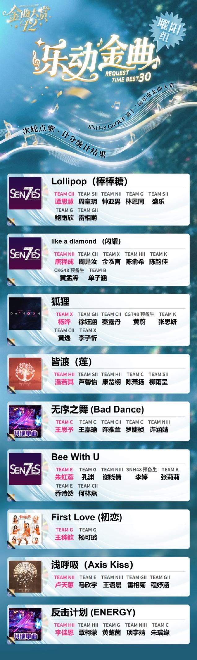SNH48第十二届金曲中报亮点纷呈 : 新人突围 + 老将逆袭 席位争夺白热化(snh48第五届金曲排名)