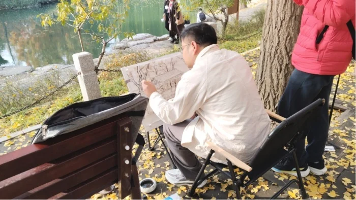 以笔墨为笺,绘就秋园:郭林吉中山公园写生中的传统坚守与现场表达(“以笔为刃,以墨为锋”)