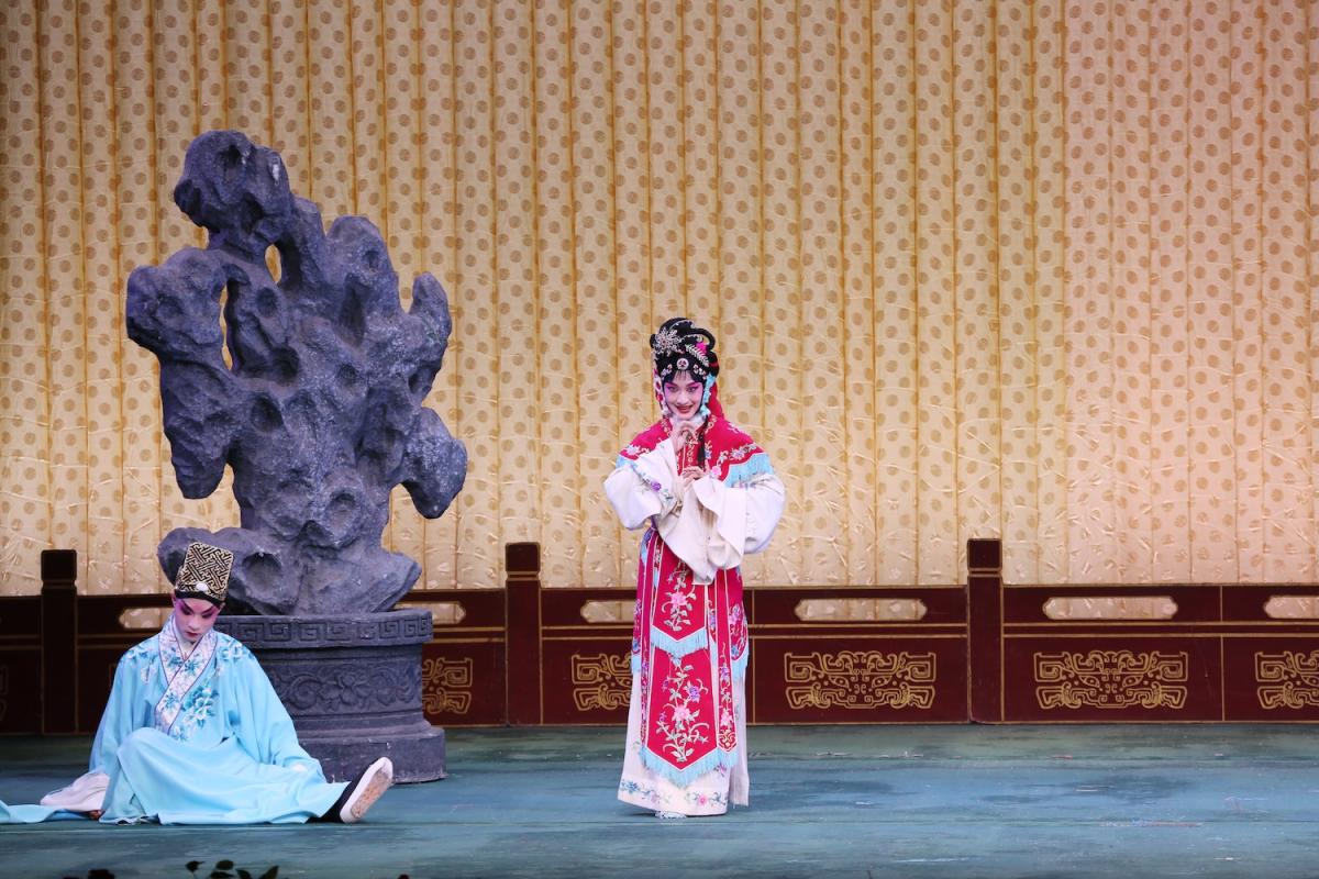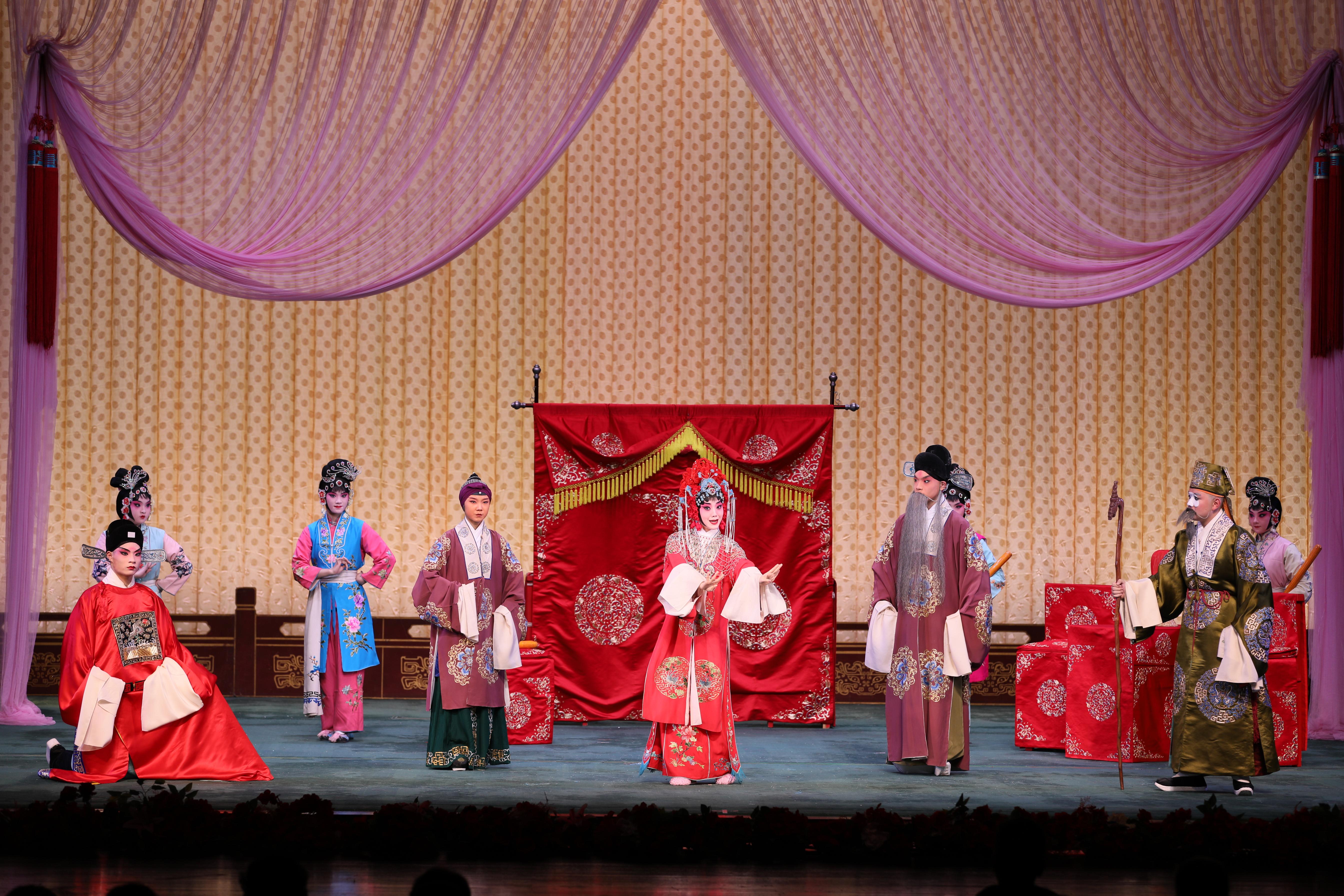 为了本次展演,学生们提前半年就开始准备。高二年级的学生朱美至在展演中出演《荀灌娘》中的荀灌娘,这是荀派经典中少有的文武并重之作,荀派声腔的总体格调柔婉甜润,女扮男装的表演分寸极难把握。“我不理解人物时,老师就会给我示范,将少女的娇羞与将领的威武融于一身,让我真切体会如何表演出荀灌娘的刚柔相济。”朱美至说。