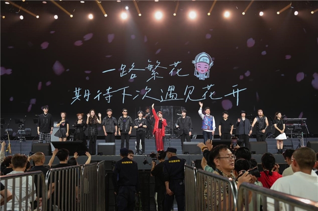 当她唱起《一起跳舞吧》时,现场观众随着节奏摇摆,并将手机手电筒打开,如星河般闪烁,观众席化作一片星光海洋。传统与创新在这场演唱会中也实现了完美融合。《凤凰飞》的激昂、《石头哥哥》的深情、《火辣辣的情歌》热烈奔放、《摘朵马兰你就走吧》的灵动,每一首歌都展现了乌兰图雅多样的音乐风格。