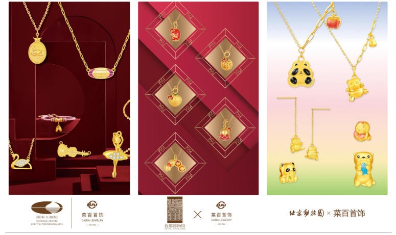 菜百股份与景山公园、北海公园两大文化单位联名的“万春纳福”“海誓金盟”系列多款足金作品,成功入选“古都印记”赛道。