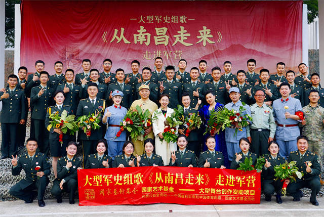 此轮巡演的主要观众,大部份是刚入伍不久的新战士。此刻的他们,正处在从懵懂青年向合格军人转变的关键阶段,军营的锤炼让他们褪去青涩,而《从南昌走来》的演出,则为他们送上了一份“精神大礼”。它不仅丰富了军营文化生活,更让新战士在歌声中读懂军史、铸牢军魂——当旋律响起,演员们饱含深情的演绎,将现场官兵的思绪带回烽火连天的岁月;唱到《奔赴抗日前线》《跨过鸭绿江》时,不少官兵眼中泛起泪光;最后一首曲目《向一流军队飞奔》的激昂旋律,更引发全场官兵齐声跟唱,热烈的掌声在营区久久回荡。