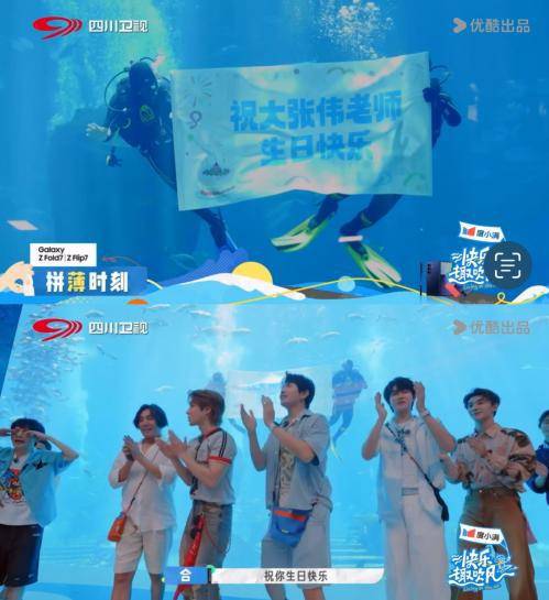 节目中还藏有温暖彩蛋。当全员沉浸水族馆表演时,潜水员突然拉开“祝大张伟生日快乐”横幅,抽风团集体庆生,让一向活泼搞怪的大老师感动不已。