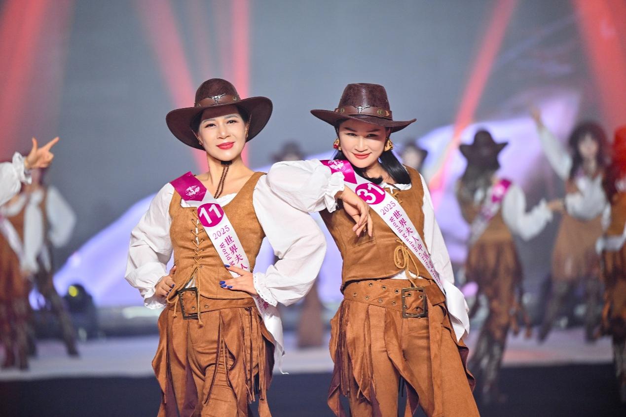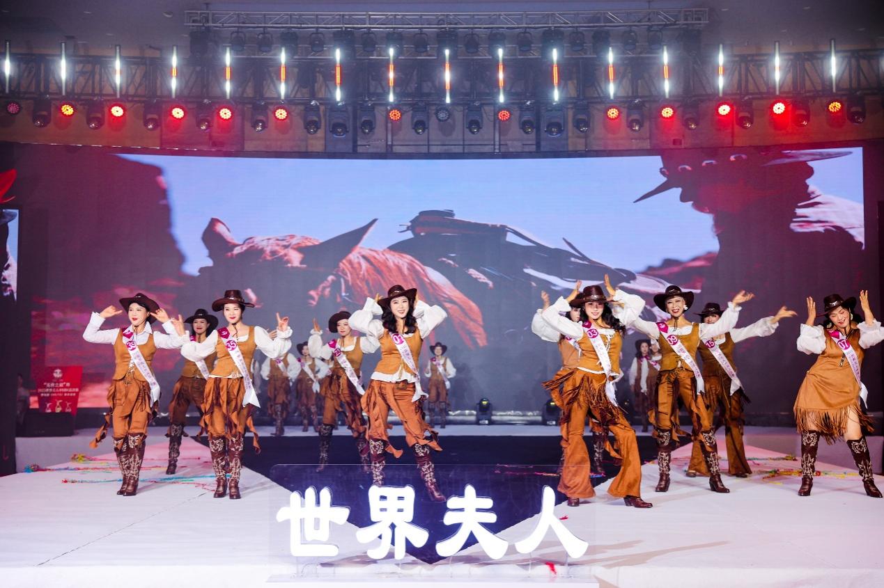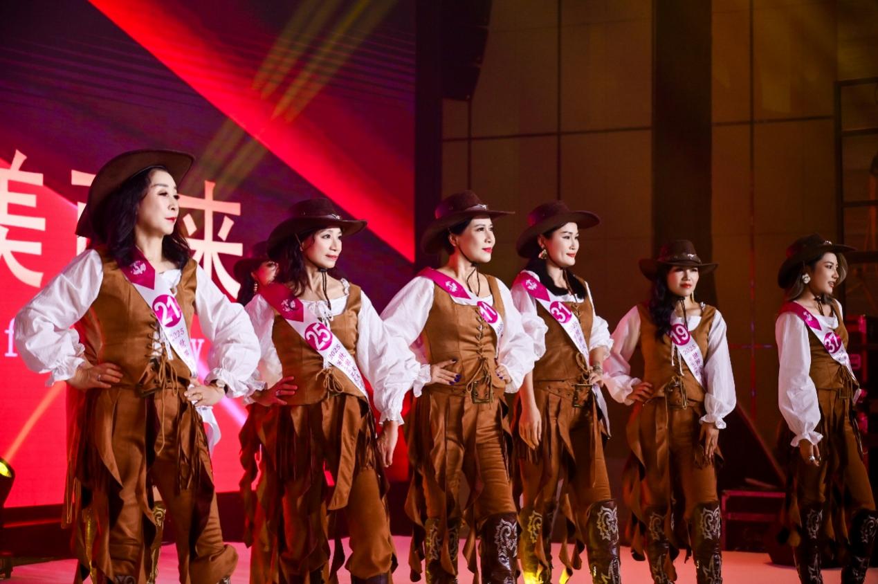 晚会第一篇章以“西部风尚”为主题,全体参赛选手身着时尚牛仔服饰,以活力四射的舞台表现,展现了当代女性自信洒脱的时尚风貌,将经典西部元素与现代审美完美融合,呈现出热情奔放的舞台效果。