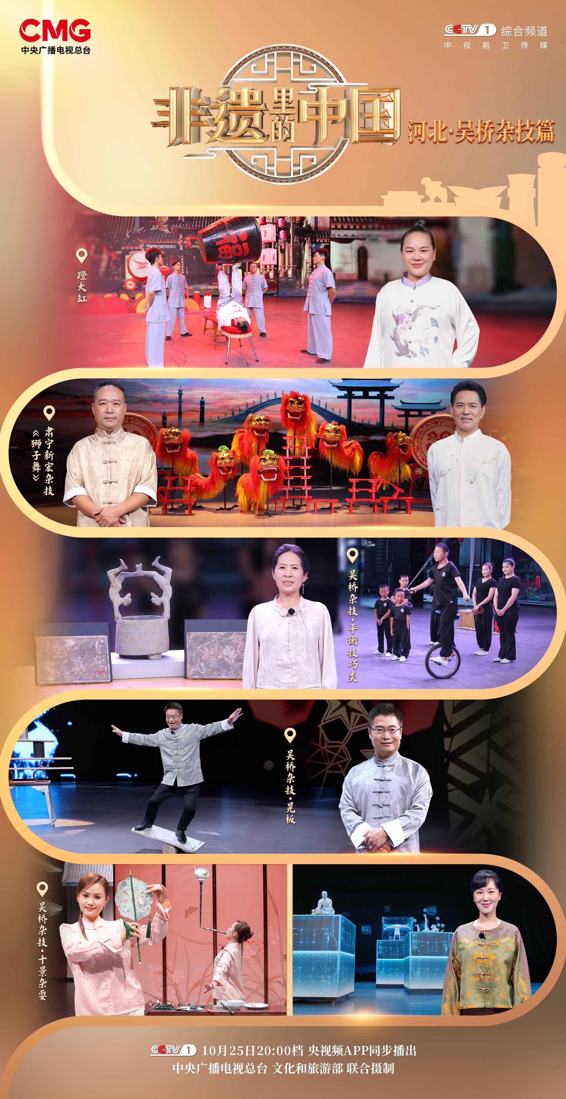 10月25日20:00档,锁定总台综合频道(CCTV-1),《非遗里的中国》带您看吴桥杂技再现“百戏”风采,听匠心传承人讲述坚守与热爱,共同见证非遗焕新的精彩时刻!