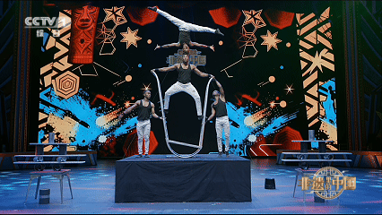 节目现场,对手顶、空中吊环、空中飞人、转碟、抖空竹、打花棍等平衡技巧类节目轮番上演,生动再现了“百戏之乡”的风采。