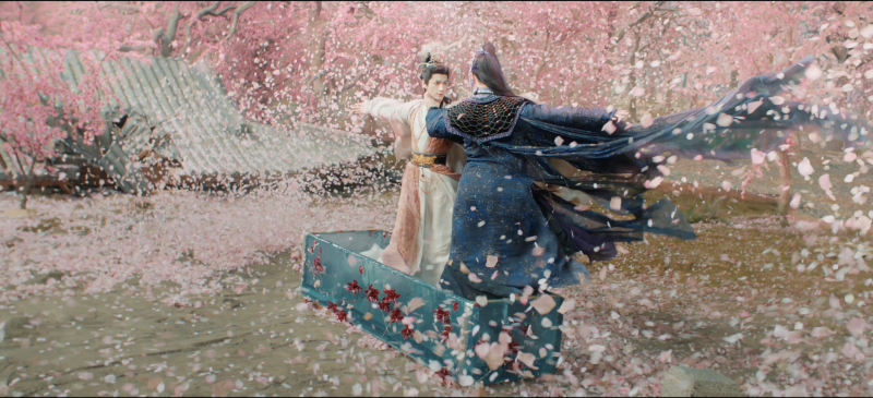 定档预告中,武戏场景如一幅幅流动的东方写意长卷:唐俪辞或一袭玄衣踏月凌空,身姿如墨;或以红绸为刃,于高台楼阁间舞出一抹惊鸿;更有与柳眼在桃花纷飞间、蒹葭摇曳处的往来过招,剑影与落花共舞,最终唯留长剑静卧、与落英同寂。每一帧画面皆将侠者之“势”与东方之“韵”熔铸一体,既见招式的凌厉写实,亦含意境的空灵留白,共同缔造出一场兼具视觉震撼与美学沉淀的东方盛宴。