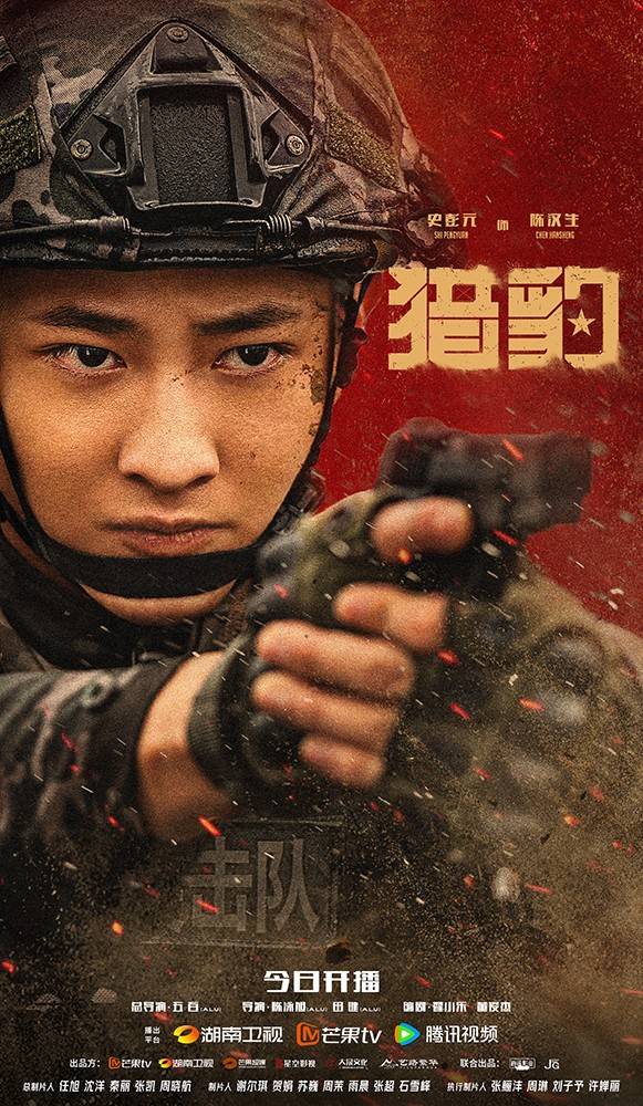 10月14日,庆祝建军100周年强军文艺重点选题作品——电视剧《猎豹》在湖南卫视、芒果TV、腾讯视频正式开播!该剧由五百担任总导演,陈泳旭、田键担任导演,翟小乐、董俊杰等担任编剧,史彭元、杨烁、蒋璐霞、武强领衔主演,袁文康特别主演,周惠林、白威特别主演,连奕名友情出演,雷淞然、袁大森、梁浩川、江珈沐、孙健淇、张桐、孙毅、凌子桐、蔡荣、魏来、于慕一、肖聪主演。讲述了陈汉生(史彭元 饰)等军校毕业生历经艰苦训练、任务磨砺后入选猎豹突击队,与一众队员直面生死考验,在多次执行艰巨任务中淬炼成长的故事,展现了新时代军人成长历练中的热血与担当。