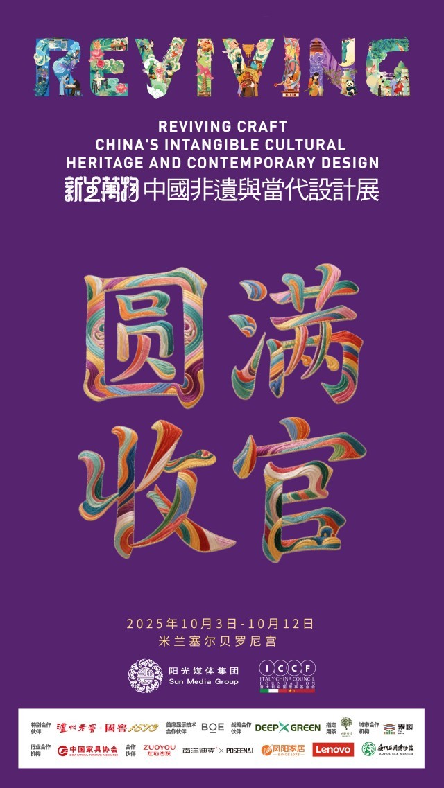 十天展期,吸引近万人次观众;41位中外杰出艺术家思想凝聚;15家参展机构共呈匠心;108件/组力作交相辉映……意大利时间10月12日,2025“新生万物——中国非遗与当代设计展”(简称“新生万物米兰展”)在米兰·塞尔贝罗尼宫圆满落下帷幕。展期内,每天都有数百人自发到场参观,使意大利当地及世界范围内的观众更加近距离地接触到了中国非遗文化和当代设计。这场以“历史绵延,社交不止”为主题,由阳光媒体集团主办、意大利中国理事基金会联合主办的文化盛事,将非遗的千年底蕴与当代设计的先锋语言巧妙相融,为中意文化交流谱写了崭新篇章。