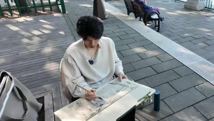 当《书画里的中国》第三季慢直播镜头定格在中山公园北侧河岸,青年艺术家陈威手中的毛笔正蘸着淡墨,在半生熟皮纸上晕开第一笔古柏的轮廓 —— 这幅以故宫午门为远景的写生,不仅复刻了紫禁城西侧的清幽景致,更用传统山水的 “借景” 技法,让社稷坛的百年底蕴与当代写生的细腻观察撞出了温柔的火花。