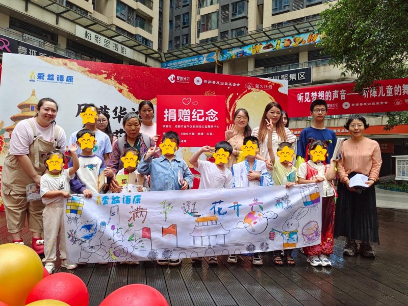 活动中还设计了紧张刺激的有奖问答、爱心捐赠、长者朗诵等环节。有奖问答围绕听力健康、融合教育、未成年人保护三大主题展开。答案就在会场周围的展架上,参观过主题展区的大人孩子们踊跃参与,在欢乐中学习知识;爱心捐赠环节是由成都金牛区启阅绘公益服务中心为听障儿童们捐赠了图书,这一本本图书,是知识的桥梁,更是社会关爱的缩影,让温暖在爱中传递!社区白马文艺队的代表宋宪龄老人精神矍铄,声情并茂地朗诵诗歌,用沉淀了岁月的声音,为活动增添了别样的温情与力量。