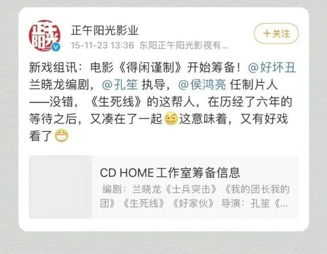 这次孔笙与兰晓龙的联手,是两人继经典抗战剧《生死线》之后,时隔十五年的再度合作,已加入有生之年系列。这样的组合,哪怕出点意外,也有基础的保障。