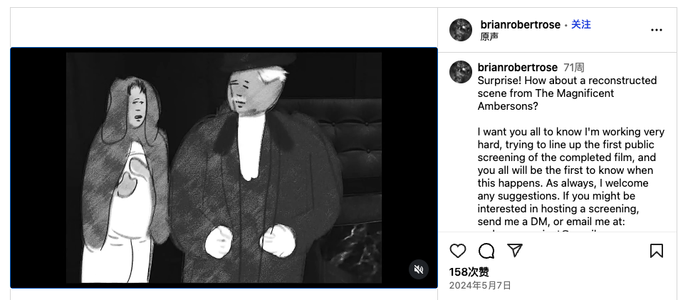△ 布莱恩·罗斯一直在ins账号上分享复原电影《伟大的安巴逊》的内容