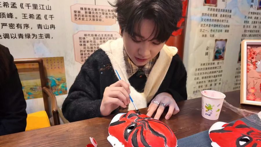 北京时间APP《最美中轴线》系列直播持续探访城市文化现场。本期,青年艺人黄誉博漫步前门三里河畔,探访颜料会馆,并在此开启一场与京剧艺术深度对话的沉浸式体验。直播镜头下,他从了解脸谱的色彩密码、京剧角色分类的门道,到亲笔绘制一张红色脸谱,在亲手创作中解锁京剧艺术的独特魅力。