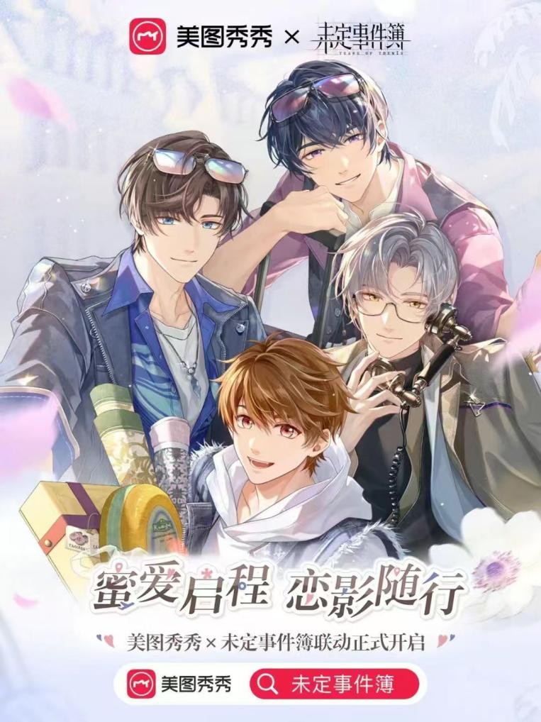 这份从游戏情感认同到使用工具进行创作的热情,推动了线上线下玩法联动。用户只需在美图秀秀App搜索“未定事件簿”,即可获取更多主题素材;同时,线下联动大屏也在多城商圈上线,实现全方位的“贴贴”体验。
