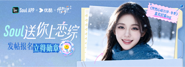而关注恋综的品牌,其实核心是关注到了年轻群体对情绪价值与精神共鸣的需求——比如今天要聊的Soul App,近来频频与优酷恋综牵手,前脚刚合作完恋爱生存真人秀《偏爱之恋》,后脚又深度合作青春恋综《怦然心动20岁:冬季》。