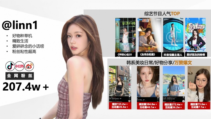 紧接着是「人设定位期」。节目结束后,团队通过多次深度访谈,结合导演组的观察,为她量身定制了「韩系穿搭博主」的清晰定位。这一步,如同为璞玉寻找最佳的雕琢角度,决定了其长期价值的基本盘。