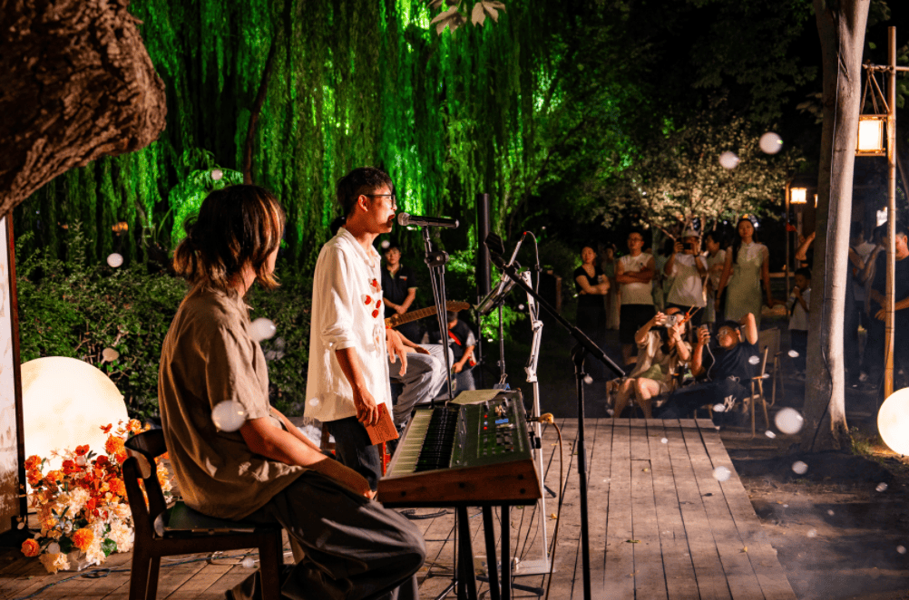 夜晚,灵水居草坪变身“庆功干杯夜”狂欢现场,现场设有乐队演绎、朗读会、开放麦等多元环节,更面向全国招募分享者,邀请大家围绕“你的年度故事”,温暖畅聊。在温暖乐队的演绎陪伴下,全场游客共同举杯,在真挚的祝福与碰杯声中,完成一次深度情感共鸣的年度仪式,共同迎接新年的到来。