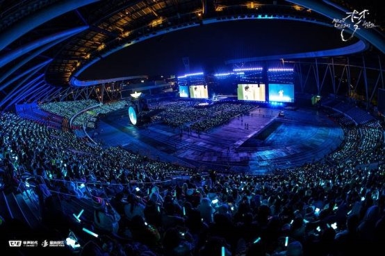 随后又通过千架无人机表演,在体育场上方变幻出呆鸟、白鸽、翅膀、元宝、爱心、飞翔手势等唯美图阵,与「南方秋野 北方春茶」、「我想借」、「星」、「仰望星云」四首歌曲的演绎完美呼应。