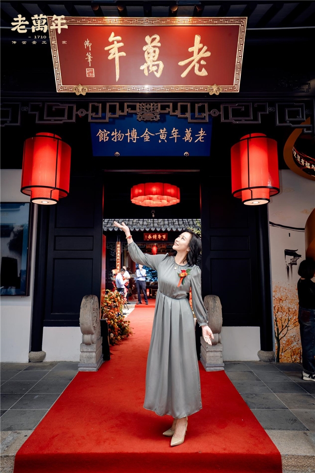 事实上,明星的青睐早有先声。稍早前,演员郝蕾便曾公开亮相该馆的启幕仪式,并进行了深度参观体验。当日她一袭优雅装扮,佩戴老萬年新品系列黄金首饰,与现场展出的金器珍品光华互映,相得益彰。