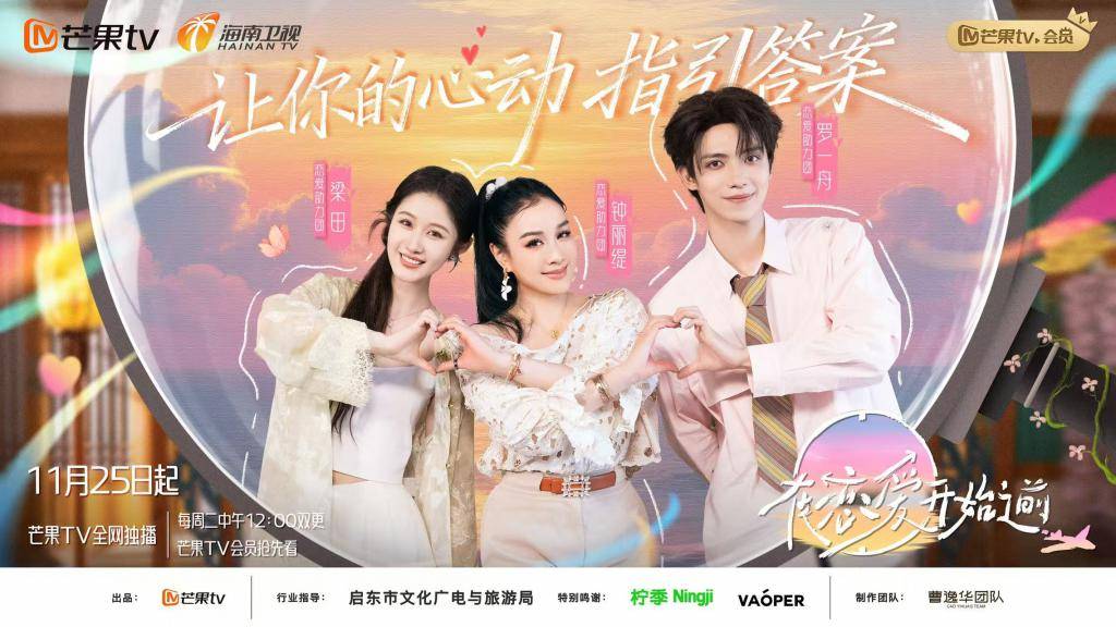 七天的相遇,是一次向外的探索,更是一次向内的旅程。所有的开始都有一个 " 之前 ",而 " 之前 " 正是所有可能的起点。11 月 25 日起每周二中午 12 点,锁定芒果 TV 独家播出的《在恋爱开始之前》,让心动重新发生。