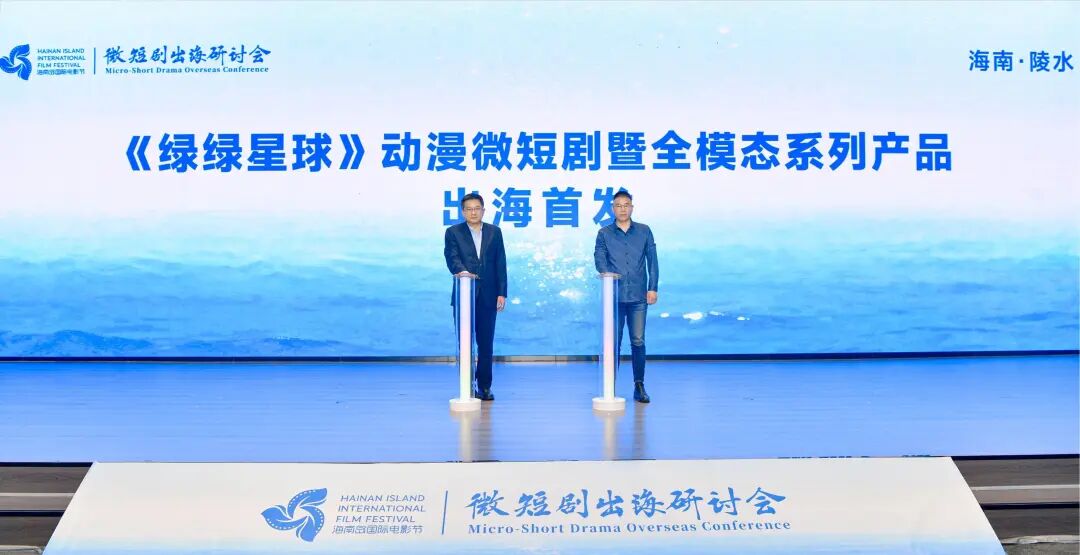中国网络视听节目协会微短剧工作委员会副会长、西安交通大学新闻与新媒体学院院长汪文斌、万物有灵(重庆)文化传媒有限公司董事长潘鹏宇,共同发布“绿绿星球”动漫微短剧,同时将共同联手央视网、西安交通大学新闻与新媒体学院,启动包含百集动画片、4K动画电影在内的全模态系列产品出海计划,通过“内容创作+全球传播+学术赋能”的强强联合,以国内首部气候变化和环保题材的全模态IP出海实践,填补该领域全球化传播的空白。