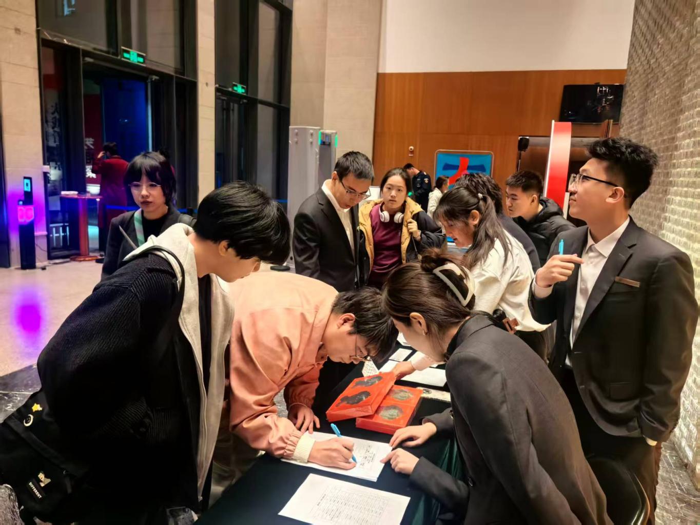 观众在北京国际戏剧中心·曹禺剧场前厅兑换礼品。北京人民艺术剧院/供图