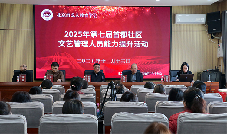 2025年11月13日至14日,由北京市教委立项,北京市成人教育学会主办,北京市成人教育学会文化艺术教育工作委员会承办的“2025年第七届首都社区文艺管理人员能力提升活动”在北京市房山区成人教育中心圆满落幕。本次活动聚焦首都社区文艺教育在全民终身学习中的关键地位,强调社区文艺活动对促进社区精神文明建设、满足居民精神文化需求的重要意义,旨在通过专业培训进一步提升首都社区文艺管理人员的综合能力,为推动社区文艺工作深入开展、建设繁荣和谐的首都社区注入新动力。