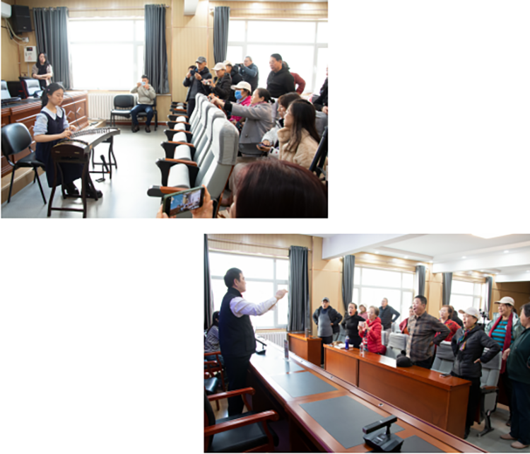 优秀青年古筝古琴教师、国家三级演奏员赵丽琼老师的民族乐器课程同样精彩纷呈。她以古筝和古琴为教学重点,通过现场演奏展示两种乐器的独特音色与表现力,并教授基础演奏技巧。学员们在赵老师的指导下,亲手弹奏乐器,感受传统民族音乐的魅力,对社区文艺活动中民族乐器的推广与应用有了更清晰的思路。