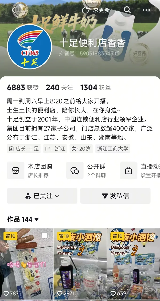 在江浙沪地带,十足便利店是家喻户晓的本土连锁品牌,门店超 4000 家,这么一家规模庞大的连锁商家,也正在借助抖音职人做大生意。