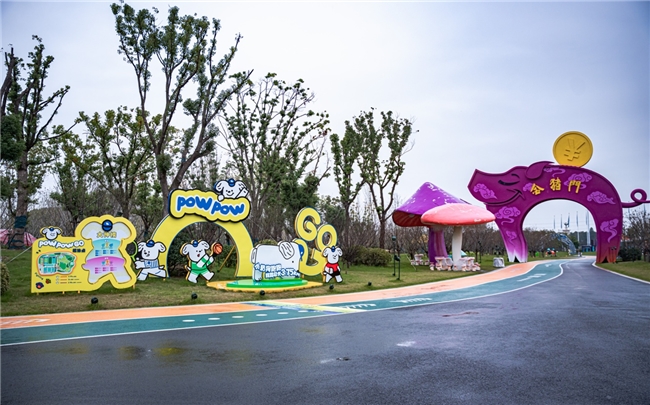 此次参观,最为引人注目的是园区打造的“小奶狗跑跑POW POW”沉浸式萌趣赛道。这条全长3.75公里的环形跑道,以萌宠IP为主题,融合十二生肖拱门、艺术雕塑与主题车站等场景装置,打造出“运动+打卡”的新型社交空间。周立宸表示,“我们想让奔跑回归纯粹的快乐,让每一次跑步都成为值得分享的体验。”